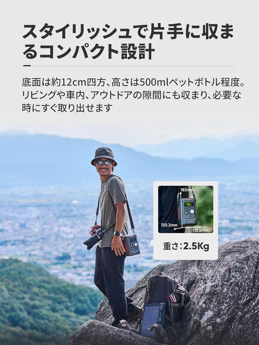「300D」と「SolarSaga 100 Air」をセットで持っていれば、どこへ出かけても充電を気にせず、思いきり時間を楽しめますよ!