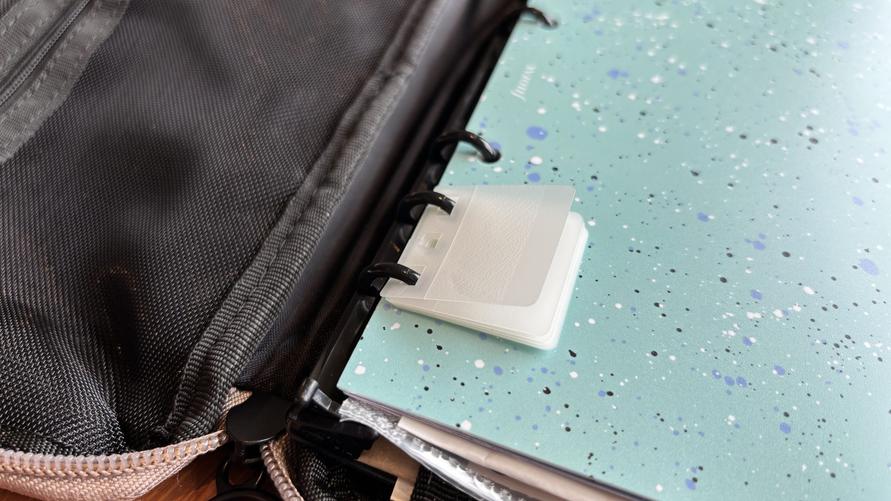 ちなみに、使う前のリングリーフをリングノートの後ろのページにセットしておけば、省スペースで持ち歩き可能。無くす心配もないですし、出先で新しく挟みたい紙に出会っても、すぐにファイリングできます。
