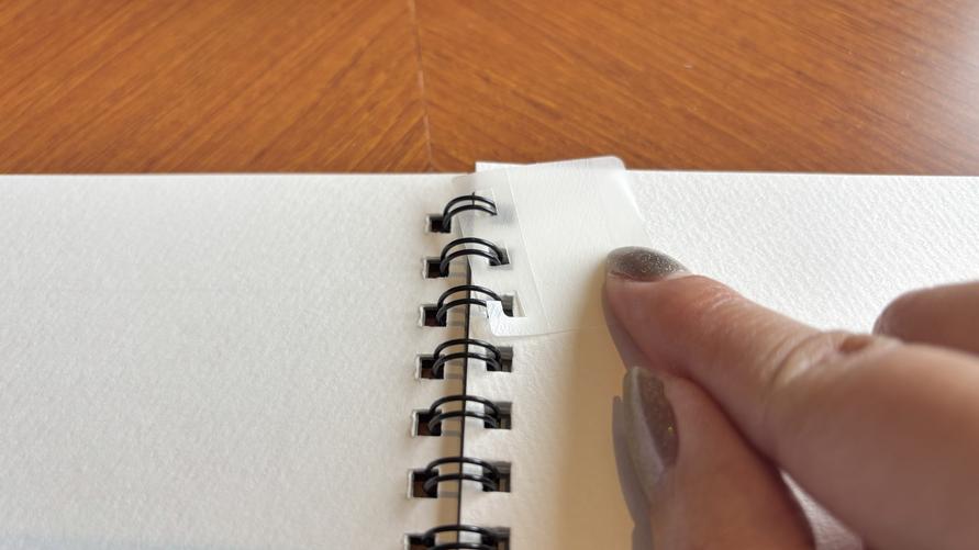 書類やカード、写真などの紙類を、リングノートにそのまま綴じられるようにするふせんパーツです。