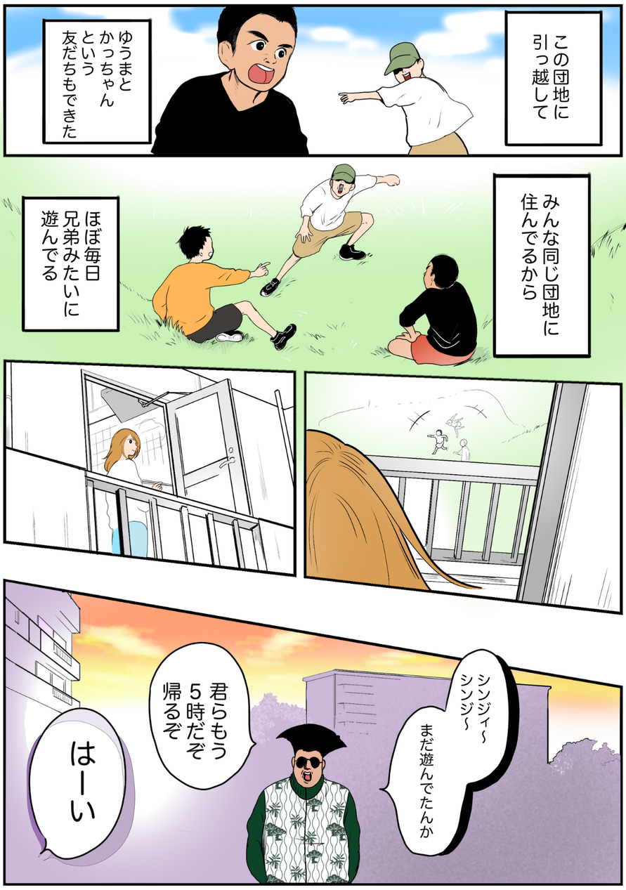 団地に引っ越して1ヶ月。家族に囲まれて、よかったね、シンジ。
