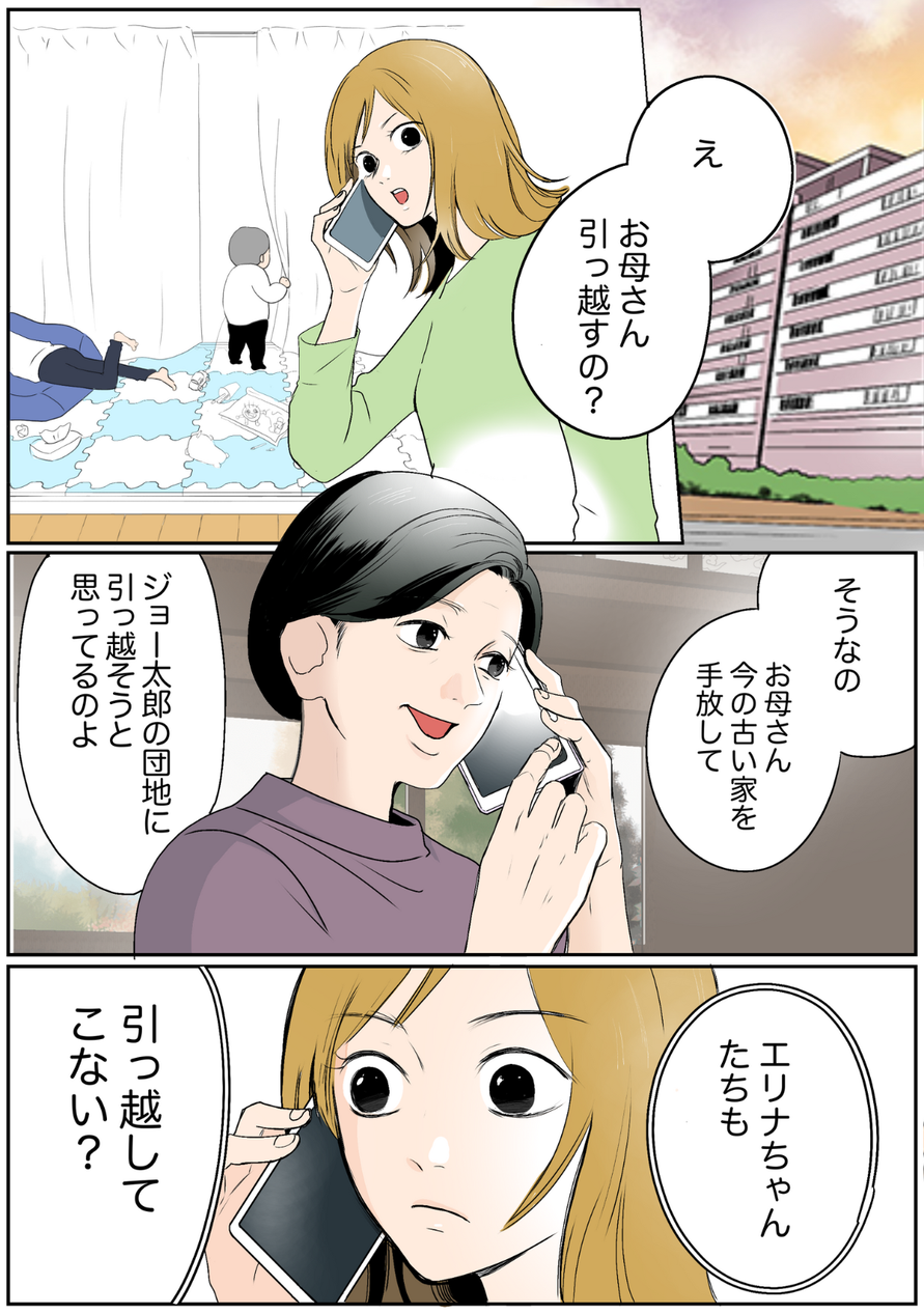 ある日エリナは、母親が古くなった実家を手放し、引っ越すことを知らされます。そして、引っ越し先に行ってみると、そこには驚くべき人物が……!