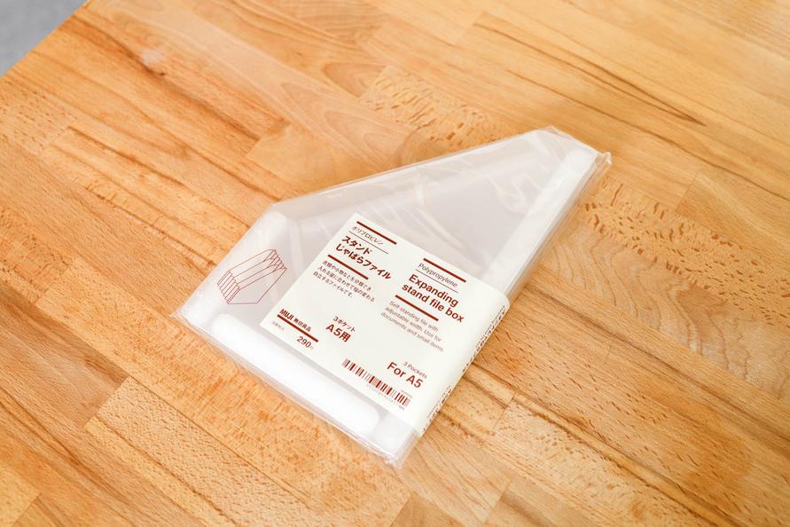 無印良品「ポリプロピレン スタンドじゃばらファイル A5用 3ポケット」290円(税込)