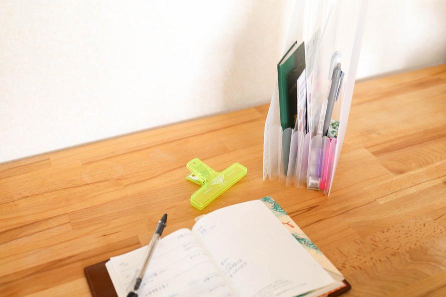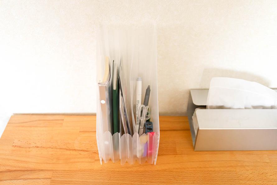 ほかにはシールをまとめたり、ペン類を入れたり。ファイルでありながら、自立するおかげでペンスタンドのようにも使えるのが画期的!