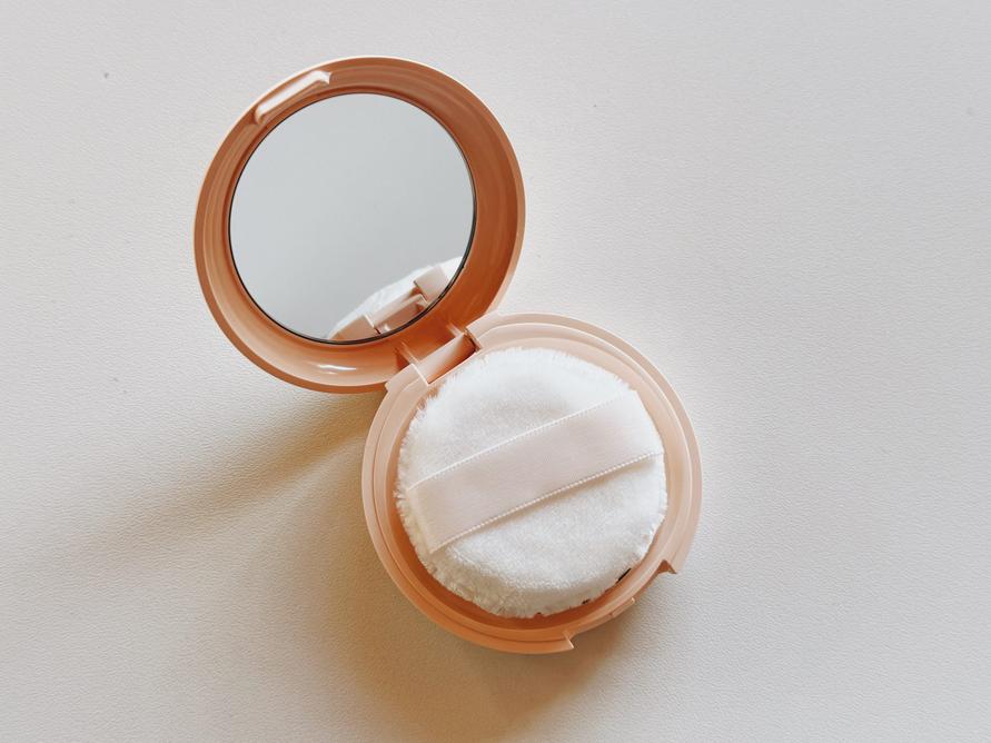 鏡とパフが付いているので、外出先でサッとお直ししたいときにも便利。