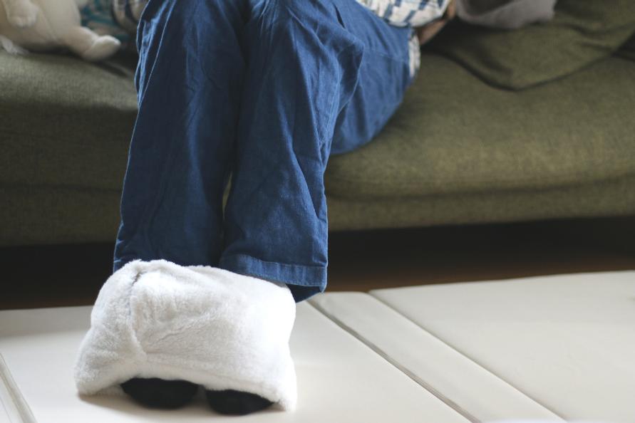 スリッパよりも温かくてふわふわ快適。今年の冬はずっとこうして過ごしています。