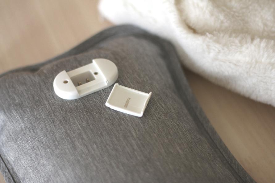 ちなみに、使い始めて丸2年が経過した我が家の電気湯たんぽは、充電部分のカバーが取れてしまいました。パチッと嵌めることはできるので今のところ無問題。特に気にせず使い倒しています。