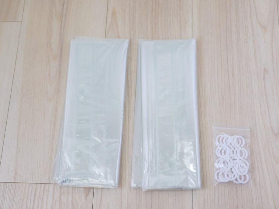 早速開封してみると、軽くて透明な「ポリ塩化ビニル」でできたカーテンライナーが2枚出てきました。