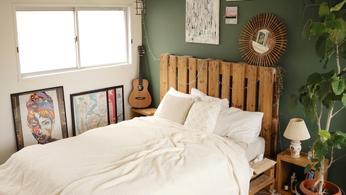 ベッドは機能的に自作する。建築家夫婦の寝室は、暮らしやすさまでを考え抜かれた設計だった